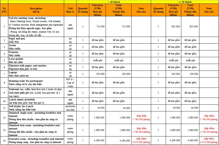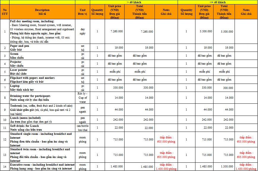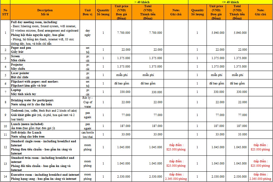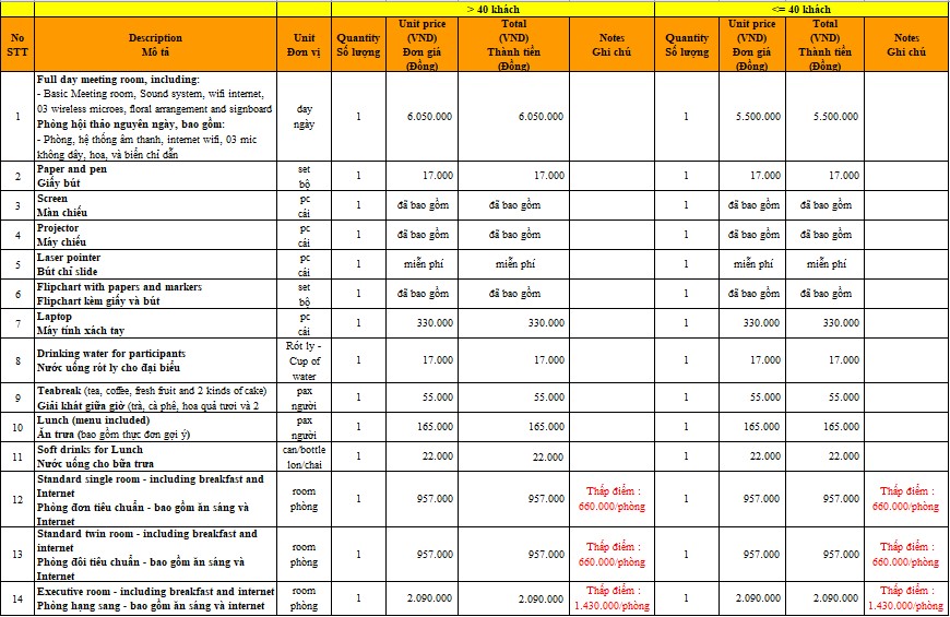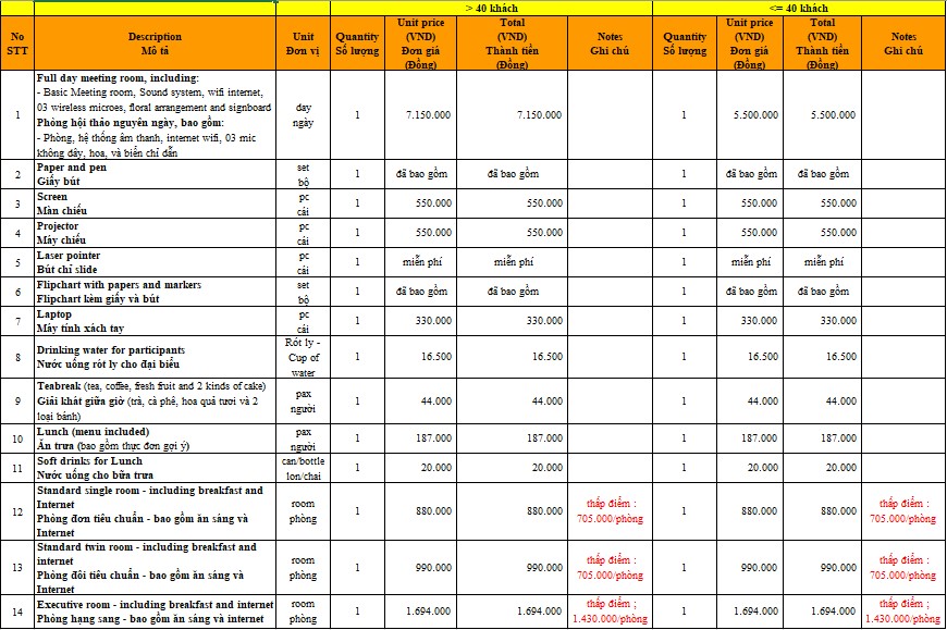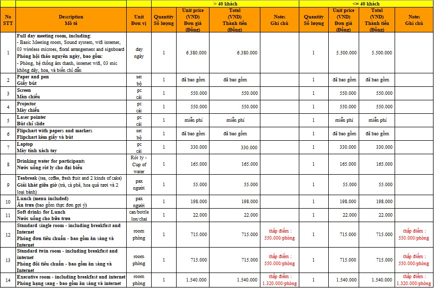 BÁO GIÁ TỔ CHỨC HỘI NGHỊ , HỘI THẢO TẠI QUẢNG BÌNH NĂM 2020
